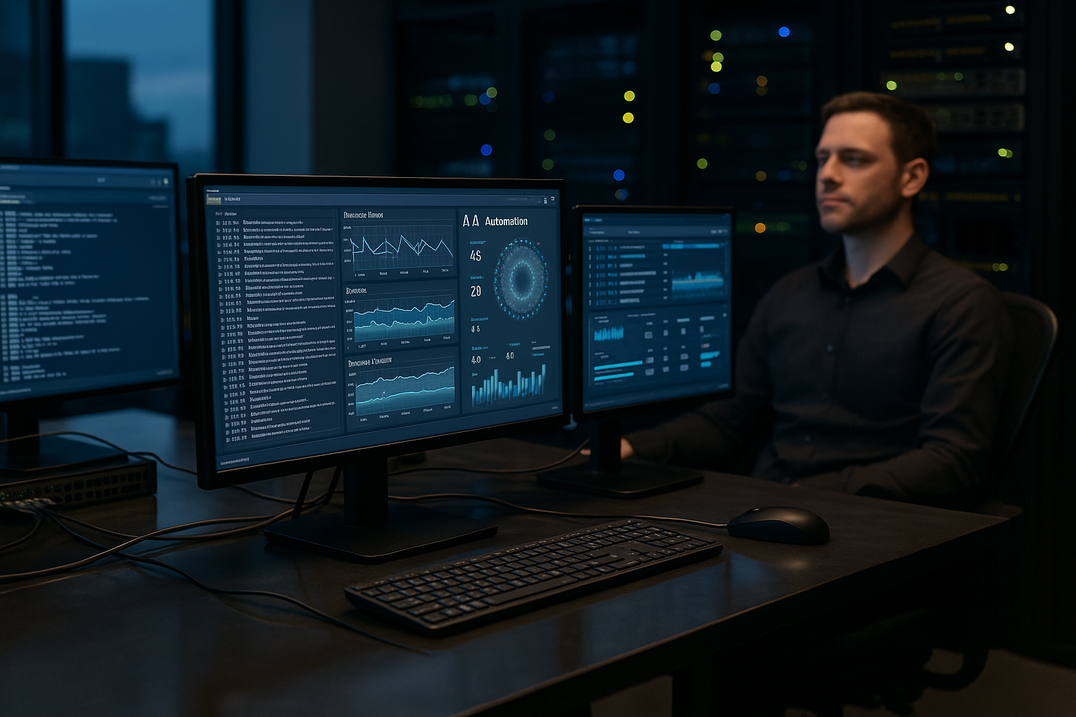 Ich sehe täglich, wie KI Routinearbeit im Hosting übernimmt: Backups, Updates, Log‑Analysen und Alarmierung laufen ohne manuelles Eingreifen. Bei Lastspitzen verteilt das System Workloads, startet zusätzliche Container und reduziert sie später wieder, damit Ressourcen nicht ungenutzt liegen. Überschreiten Metriken wie CPU‑Load oder Latenz definierte Schwellen, greifen Playbooks und führen Maßnahmen sofort aus. Für Einsteiger lohnt ein Blick auf aktuelles KI‑Monitoring, weil dort sichtbar wird, was bereits zuverlässig automatisiert. Ich bewerte den Nutzen besonders hoch, wenn SLAs eng gesetzt sind und Ausfälle teuer werden; dann zählt jede Sekunde.