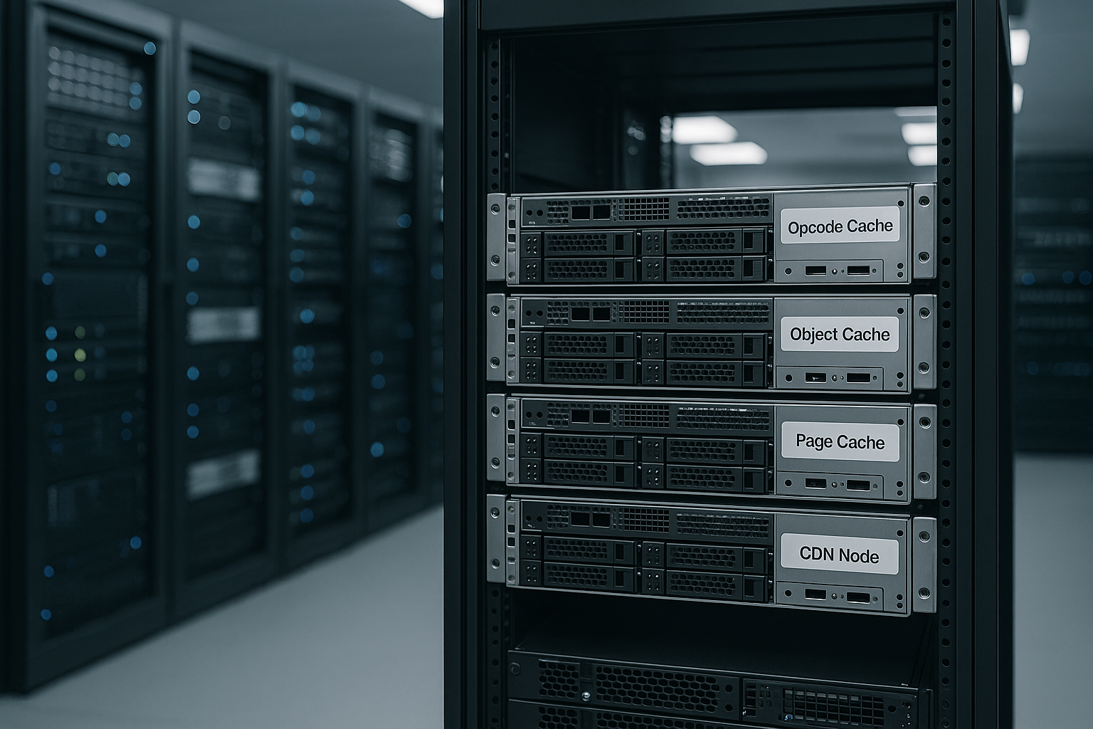 Ich nutze vier Ebenen, um Ladezeiten und Serverlast zu senken: Opcode, Objekt, Page und CDN. Jede Ebene adressiert ein anderes Nadelöhr und arbeitet auf einer eigenen Stufe der Infrastruktur. So spare ich CPU-Zeit bei der Codeausführung, reduziere Datenbankabfragen, liefere HTML direkt aus und bringe Inhalte geografisch näher zum Nutzer. Ich priorisiere zuerst den größten Engpass und ergänze die restlichen Caches schrittweise. Diese klare Reihenfolge macht Optimierung messbar und stabil.