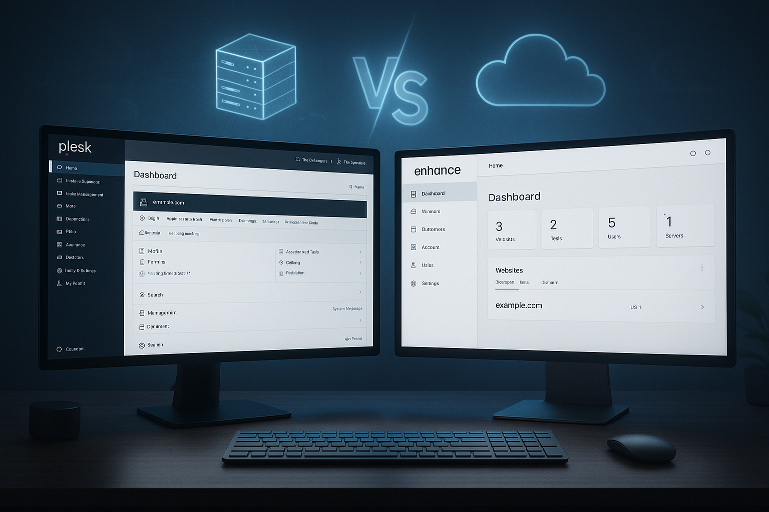 Jeg kategoriserer Plesk som etableret panel med en klar single-server-tankegang, der dækker mange scenarier via udvidelser og fjernindstillinger. Enhance er i bund og grund baseret på distribuerede opsætninger og samler flere hosts, VM'er eller containere i et centralt dashboard. Denne struktur gør horisontal skalering meget direkte, da tjenester som web, databaser eller e-mail kan migreres til flere noder. Plesk scorer på den anden side med bred platformsunderstøttelse, herunder Windows, og et stort udvidelseslandskab. Hvis du driver mange heterogene servermiljøer, vil du finde solide værktøjer i Plesk; hvis du hurtigt vil tilføje noder og separate tjenester, er Enhance normalt mere effektiv. Jeg ser valget af arkitektur som en løftestang for senere migreringer, failover-strategier og vedligeholdelsesvinduer.