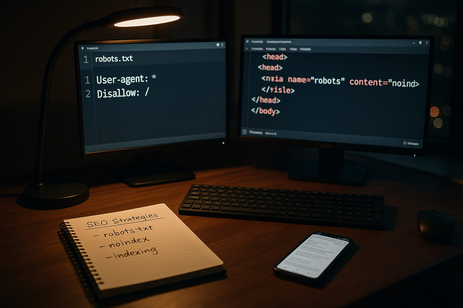 Das noindex-meta-tag eller HTTP-overskriften "X-Robots-Tag: noindex" sikrer, at en side ikke vises i søgeresultaterne. I modsætning til robots.txt får Google lov til at gennemgå siden, læser signalet og fjerner det fra søgeresultaterne. Indeks. Det er sådan, jeg holder dubletter, interne søgninger, arkivsider eller kortvarige kampagne-URL'er ude. Jeg bruger denne kontrol pr. URL, fordi jeg vil have absolut sikkerhed for indeksets synlighed. Hvis jeg vil rydde op permanent, indstiller jeg noindex og observerer effekten i Search Console.
