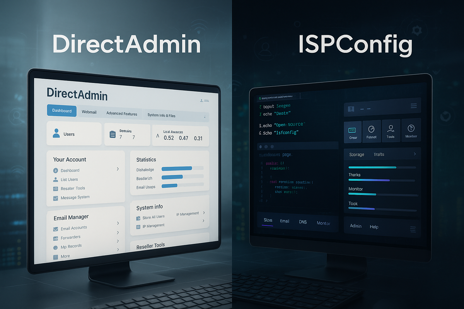 - Bedienung: DirectAdmin wirkt schlank und schnell; ISPConfig ist funktional, braucht aber Einarbeitung.