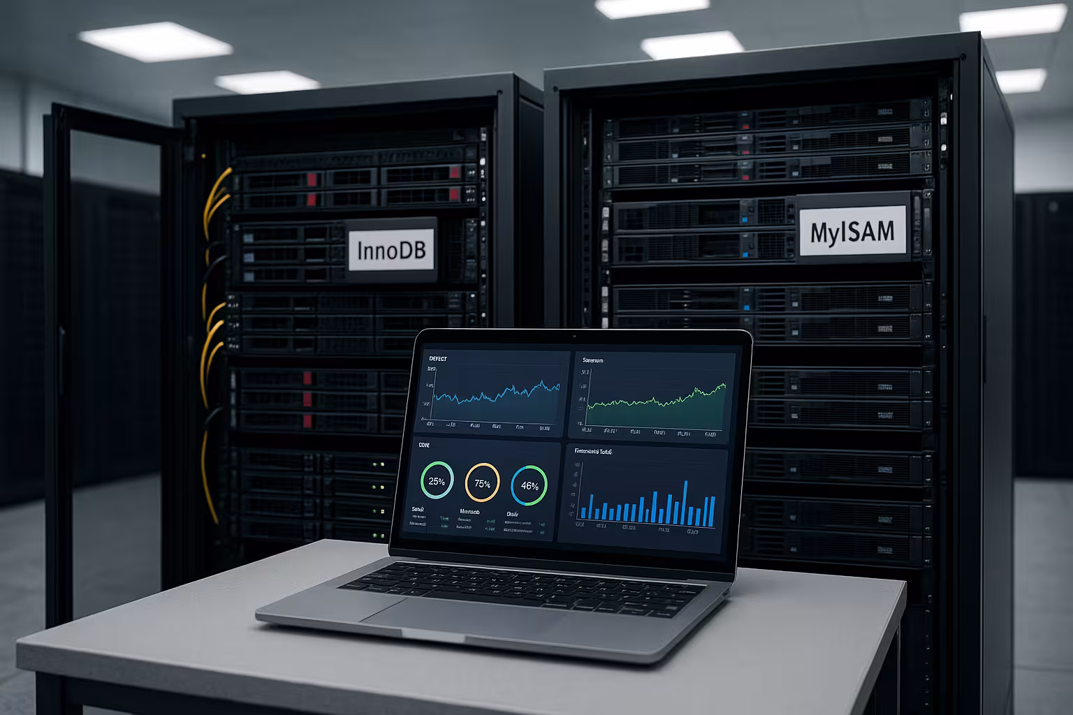 La elección de Motor de almacenamiento MySQL determina directamente si InnoDB o MyISAM soporta el rendimiento de su alojamiento web y la velocidad de respuesta de las páginas en caso de alta paralelidad. Le mostraré qué motor funciona de forma mediblemente más rápida en WordPress, tiendas y API, y cómo evitar cuellos de botella mediante bloqueos, transacciones y estrategias de E/S.