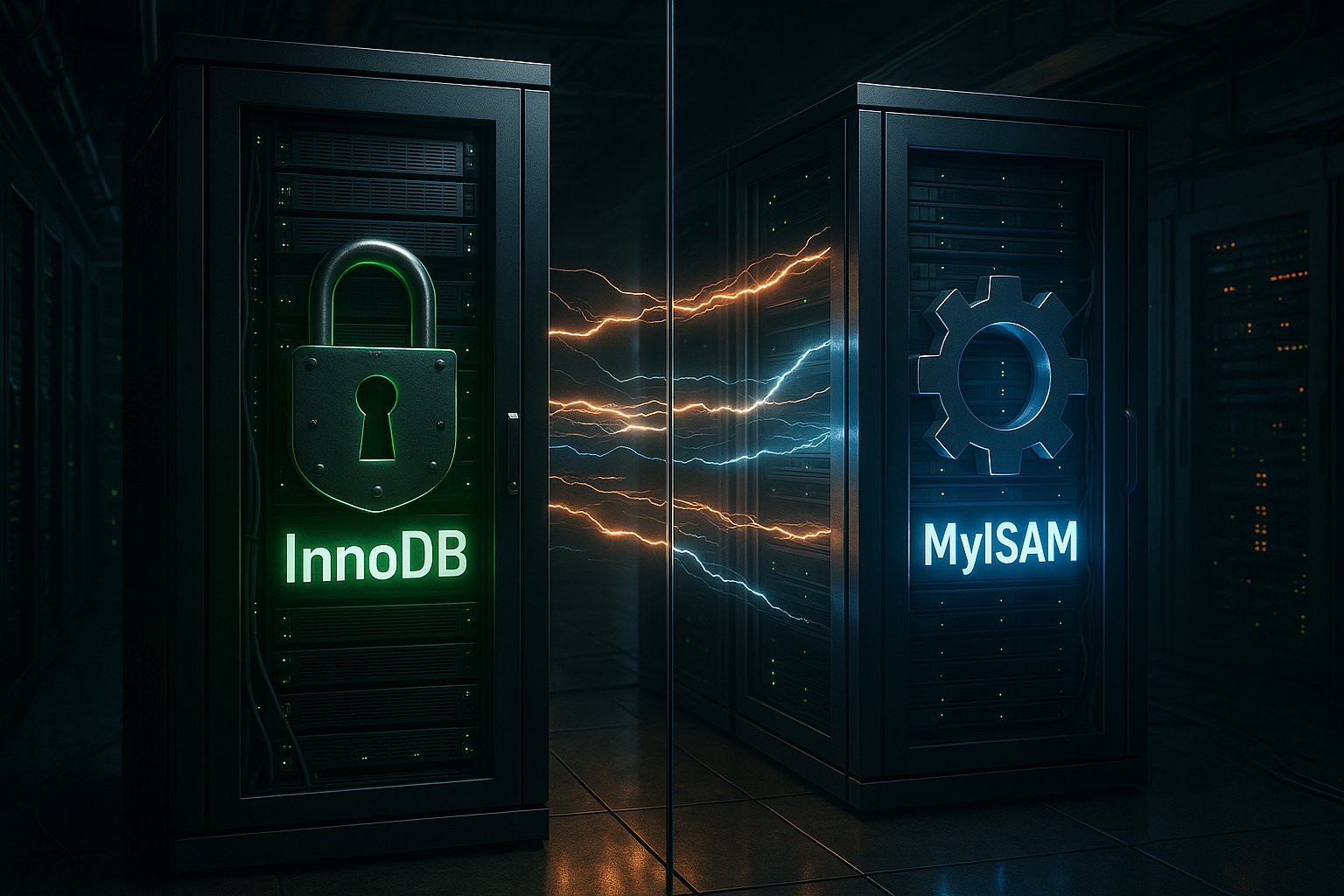 La diferencia más importante radica en el Bloqueo. MyISAM bloquea toda la tabla con cada escritura, lo que hace que las SELECT individuales sean muy rápidas, pero provoca cadenas de espera bajo carga. InnoDB solo bloquea las filas afectadas, deja que las demás sigan funcionando y, de este modo, ofrece un mayor rendimiento en las escrituras. MVCC reduce los conflictos de lectura-escritura, ya que los lectores suelen ver una versión coherente mientras los escritores preparan los cambios. Por eso, para foros, tiendas y eventos de seguimiento, utilizo sistemáticamente InnoDB y mantengo los tiempos de respuesta estables y bajos bajo presión, sin tener que recurrir a costosos equipos de hardware de gran capacidad.
