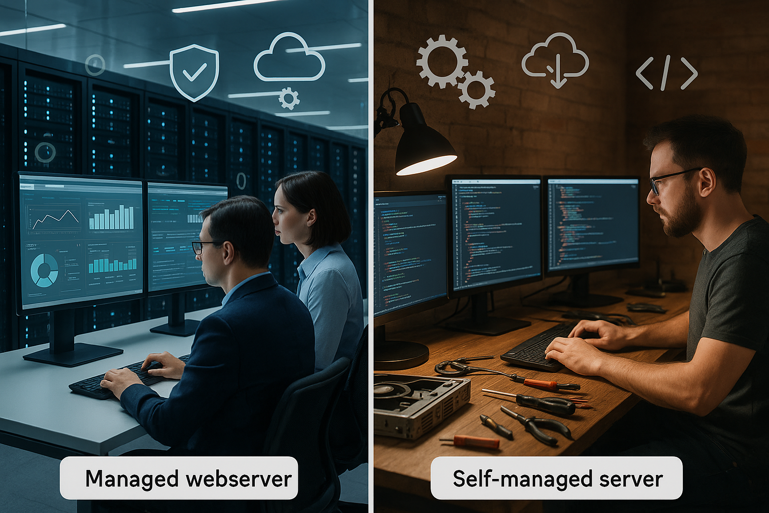 Hallinnoitu vs. itse hallinnoitu päättää Nopeusprojektin vastuullisuus- ja kustannussuunnitelma. Hallinnointi tuo aikaa, turvallisuutta ja tukea, itsehallinta tarjoaa vapautta, mutta vaatii kurinalaisuutta ja taitoa. Valitsen Managedin, kun vakaus, 24/7-tuki ja ennustettavat prosessit ovat tärkeitä. Valitsen itse hallinnoidun, kun tarvitsen maksimaalista hallintaa, erikoisasetuksia ja syvällistä automaatiota. Jos sekoitat näitä kahta, saat molempien maailmojen parhaat puolet ja pysyt sopeutumiskykyisenä projektin kasvaessa.