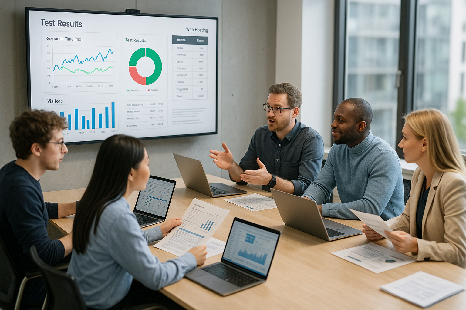 Aloitan selkeällä KohteetTarkistan testien mittausmenetelmät ja vertaan niitä vaatimuksiini. Sen jälkeen asetan suorituskyvyn, käytettävyyden, turvallisuuden, tuen ja kustannukset tärkeysjärjestykseen projektin vaiheiden mukaan. Luen varmuuskopioita, SSL:ää ja uusintahintoja koskevat pikkuprintitiedot ennen varauksen tekemistä. Testaan oikealla sivustolla, tarkkailen 7-14 päivän ajan ja analysoin lokitiedot ja sivunopeusluvut. Vasta sen jälkeen päivitän tariffeja kohdennetusti ja ylläpidän infrastruktuuria pienin askelin. kestävä.