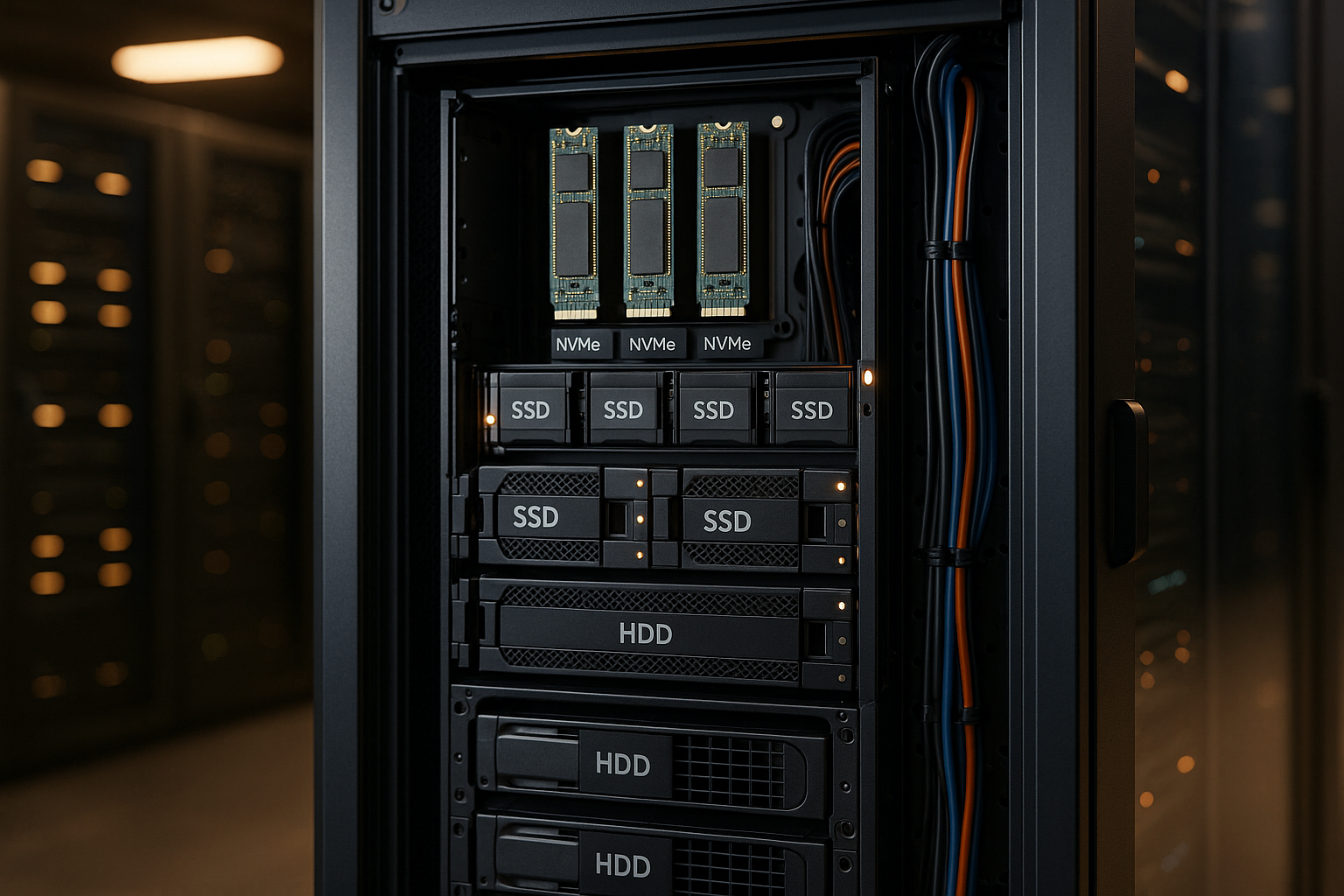Moderne Webanwendungen, E-Commerce und Datenanalyse verlangen gleichzeitig hohe Performance und viel Kapazität – eine einzelne Speicherklasse schafft diesen Spagat selten. Ich kombiniere darum NVMe, SSD und HDD so, dass heiße Daten stets auf schnellen Medien liegen, während kalte Daten günstig und sicher ruhen [1][3][6]. Diese Mischung senkt Latenzen bei Abfragen, beschleunigt Deployments und reduziert Kosten für Archive deutlich. Gleichzeitig halte ich die Infrastruktur anpassbar, weil sich Tiers getrennt erweitern lassen, ohne bestehende Systeme umzuziehen. So bleibt die Plattform belastbar, reagiert schnell und bleibt bei wachsender Datemenge finanziell tragbar.