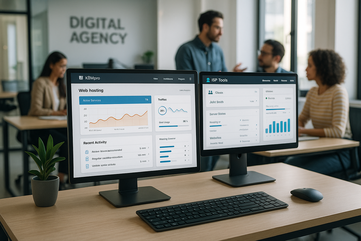 Porto con me KBMpro e Strumenti ISP Metto ordine nella gestione dell'hosting per agenzie e provider e combino gestione dei clienti, progetti e fatturazione in un unico flusso. Controllo domini, server, contabilità, registrazione delle ore e assistenza da un unico sistema e mantengo i processi snelli e tracciabili grazie all'automazione.
