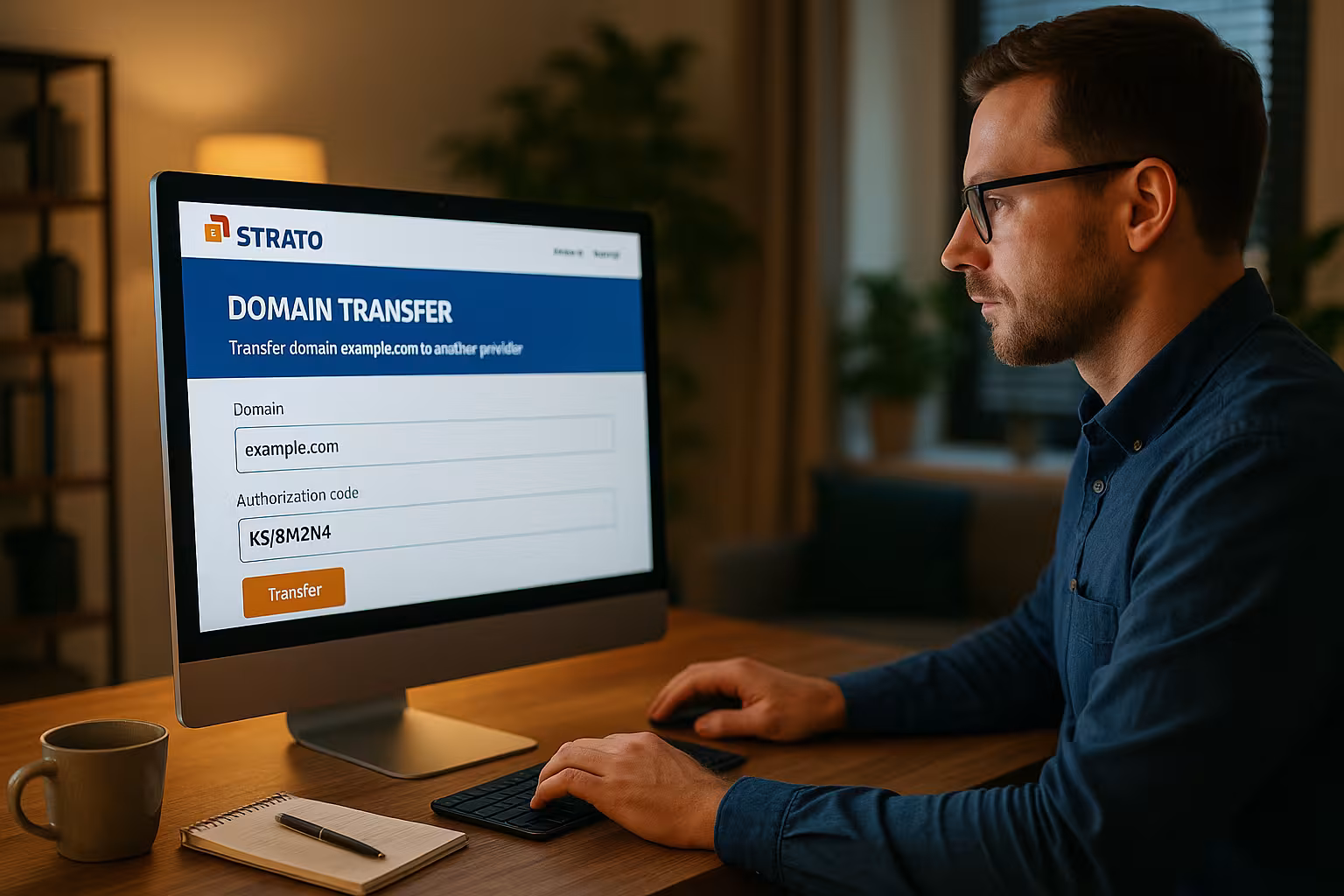 Inizio il trasferimento con la nuova società di registrazione, inserisco il nome di dominio e Codice di autorizzazione e confermare la richiesta di trasferimento via e-mail. In alcuni casi, richiedo anche l'approvazione al centro clienti Strato, in modo da avviare immediatamente il processo. Nel frattempo, tengo d'occhio le e-mail, controllo la cartella spam e rispondo rapidamente alle domande. Lascio un po' di tempo per l'attesa, perché il trasferimento vero e proprio richiede da qualche ora a qualche giorno, a seconda del finale. Non appena il trasferimento è stato completato, sono pronto per il DNS-Cambio di destinazione d'uso.
