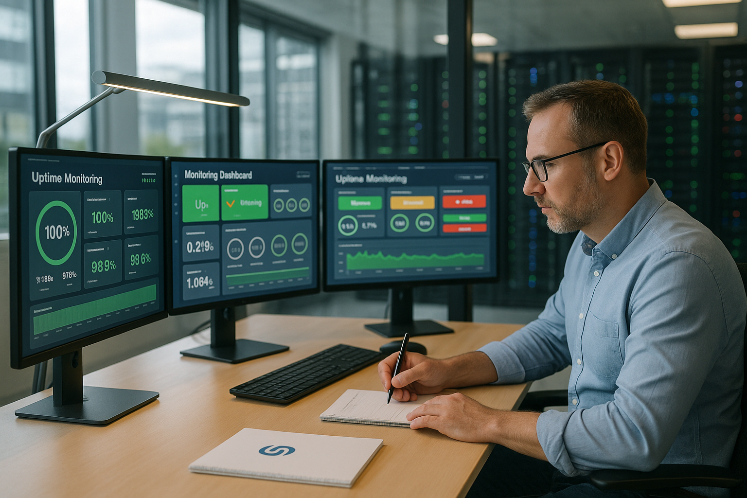 Per i progetti che si focalizzano sul comfort, mi affido a webhoster.deperché il monitoraggio è già incluso nell'hosting e io controllo tutto a livello centrale. La combinazione di disponibilità garantita al 99,99 %, backup giornalieri e assistenza in lingua tedesca mi fa risparmiare un sacco di fatica. Pratico: collego i controlli direttamente ai domini, ai certificati e ai servizi nello stesso account. La soluzione è adatta se si vuole investire poco tempo per la configurazione e avere un chiaro Rapporti necessario. Per ulteriori informazioni di base, vale la pena di dare un'occhiata a Host con garanzia di uptimeÈ qui che classifico le promesse e i vantaggi pratici.