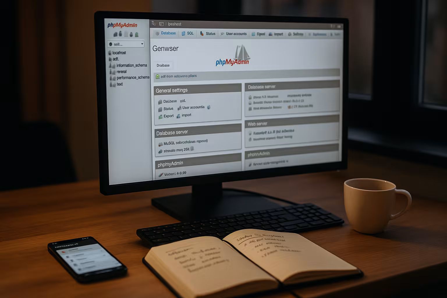Prieš pradėdamas apibendrinsiu svarbiausius tikslus, kad galėtumėte viską sekti. Pirmiausia KAS sistemoje sukuriu duomenų bazes ir saugioje vietoje išsaugau visus prieigos duomenis. Tada aktyvuoju "phpMyAdmin", išbandau prisijungimą ir apibrėţiu aiškias teises. Nuotolinei prieigai apriboju autorizaciją iki konkrečių IP adresų ir naudoju saugius slaptažodžius. Galiausiai sukuriu paprastą atsarginių kopijų kūrimo strategiją ir optimizuoju užklausas Veikimas ir stabilumą.