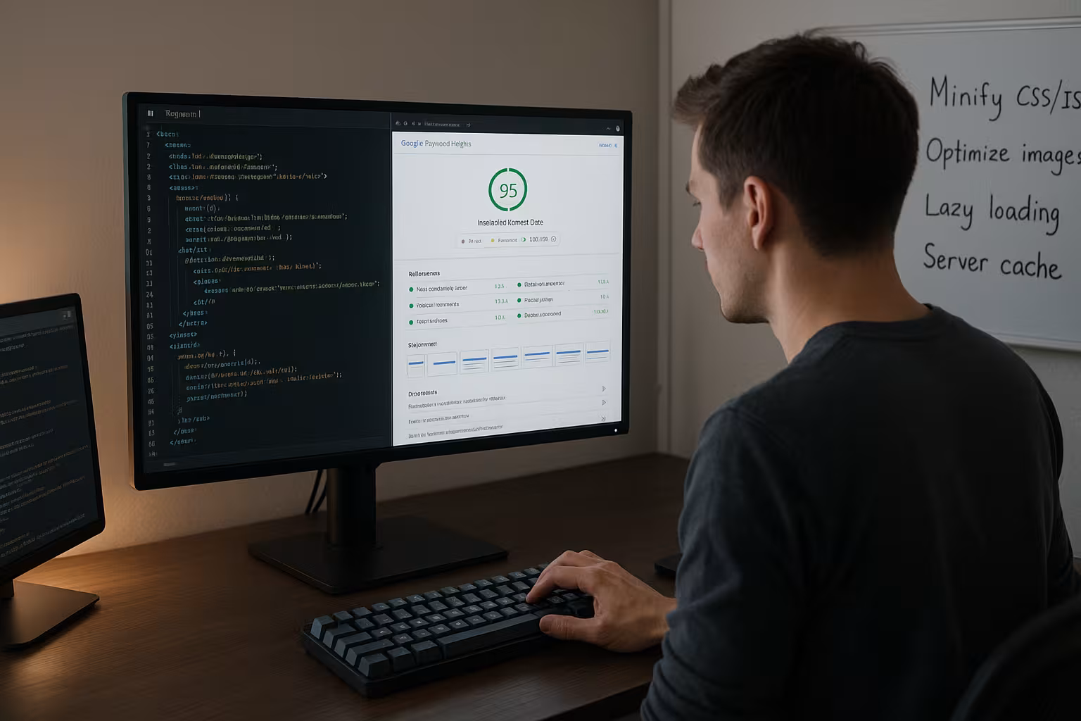Ich optimiere zuerst Inhalte mit größtem Hebel: Bilder verkleinern, Lazy Loading aktivieren, kritische CSS-Teile inline und blockierende Skripte verschieben. Danach sichere ich Caching-Strategien auf Browser- und Serverseite, räume WordPress-Features und Datenbank auf und streiche unnötige Plugins. Ich prüfe Infrastruktur, HTTP/2/3, Brotli und OPcache und sorge für saubere Deployment-Prozesse mit Versionierung. Bei Bedarf ergänze ich ein CDN und reguliere Header und Variants. Abschließend kontrolliere ich Kennzahlen iterativ, bis LCP, CLS und INP stabil in grünen Bereichen liegen.