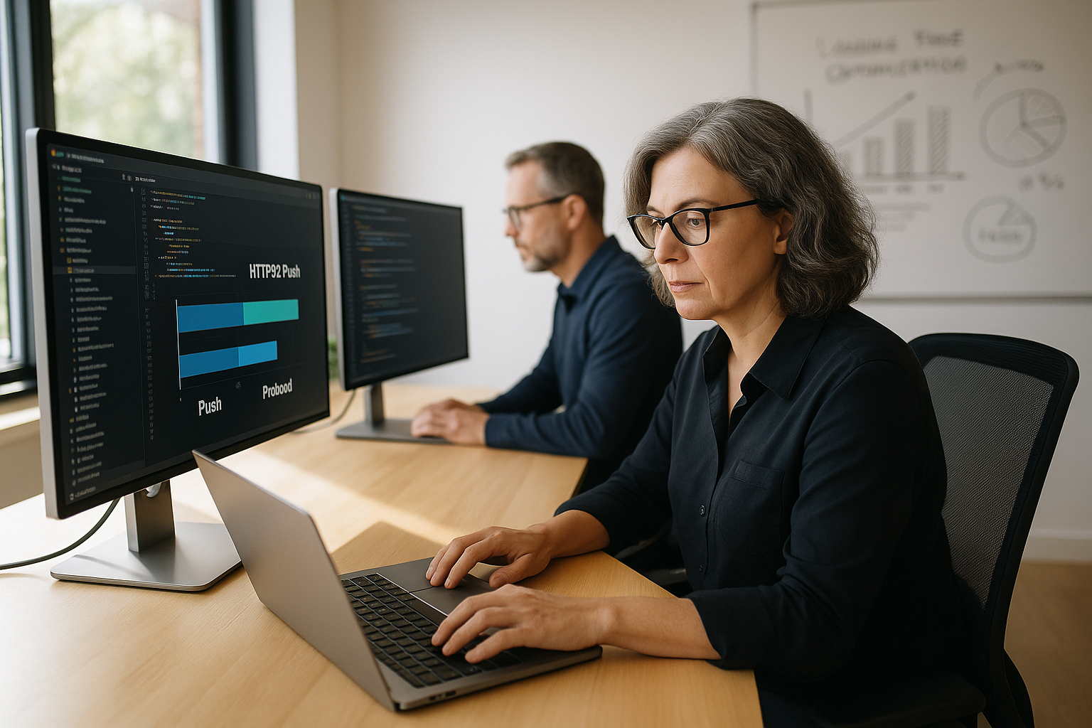 I măsura LCP, TTI, TBT și INP cu Lighthouse, adaug date de execuție prin RUM și compar variantele utilizând teste A/B. WebPageTest sau instrumente similare mă ajută să analizez diagramele în cascadă și să recunosc dacă preload și push funcționează conform planului. Combinația de date de laborator și de teren arată dacă optimizările sunt viabile sau generează efecte secundare. Verific în mod regulat modul în care browserele gestionează server push, deoarece unii agenți de utilizator restricționează sau ignoră activele push [8]. Pe baza acestor date, decid ce tehnologie să extind în continuare și pe care să o retrag.