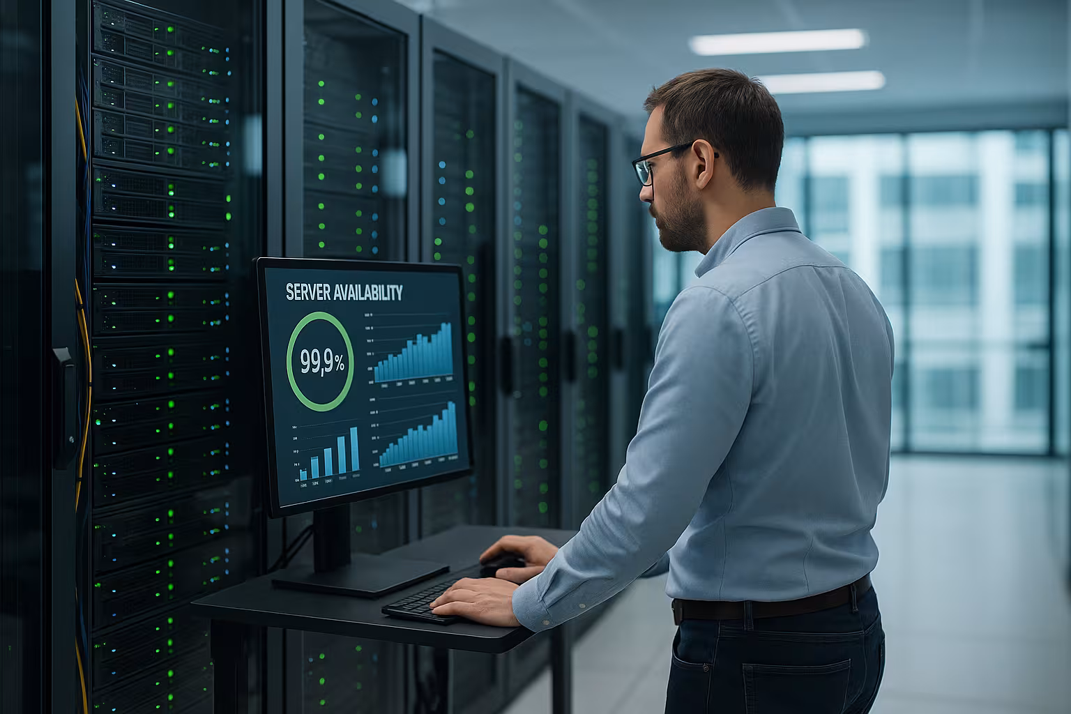 Высокое время безотказной работы достигается благодаря Архитектуране из обещаний. У меня есть подтвержденные гарантированные уровни избыточности: N+1 для питания/охлаждения, работа несколькихAZ, активные/активные балансировщики нагрузки, репликация базы данных с временем обхода отказа в секундах. Я фиксирую обязательства по пропускной способности в метриках: максимальные CPU и IO overcommit, гарантированные IOPS, пропускная способность сети на экземпляр, лимиты burst. Для масштабирования я определяю время инициализации (например, +2 узла в течение 15 минут) и указываю, что развертывание должно происходить в Перекрытие чтобы освобождение не сопровождалось простоем.