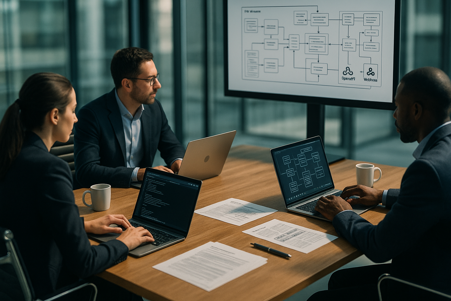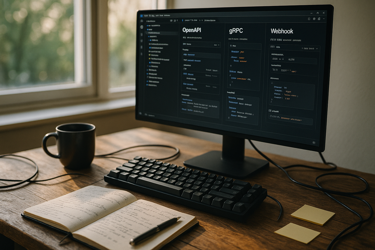 In realen Setups trenne ich Rollen sauber: gRPC für schnelle interne Calls, OpenAPI für externe Konsumenten und Webhooks für Ereignisse an Partner. Kommandos wie Provisionieren oder Ändern laufen synchron über REST oder gRPC, während Ereignisse wie “Domain delegiert” asynchron per Webhook fließen. Ein API-Gateway zentralisiert Authentifizierung, Ratensteuerung und Observability, während ein Schema-Repository Verträge versioniert. Für Planung und Roadmaps hilft mir der Ansatz API-first im Hosting, damit Teams Schnittstellen als Produkte denken. So halte ich Kopplung gering, Releases berechenbar und Integrationsaufwand überschaubar.