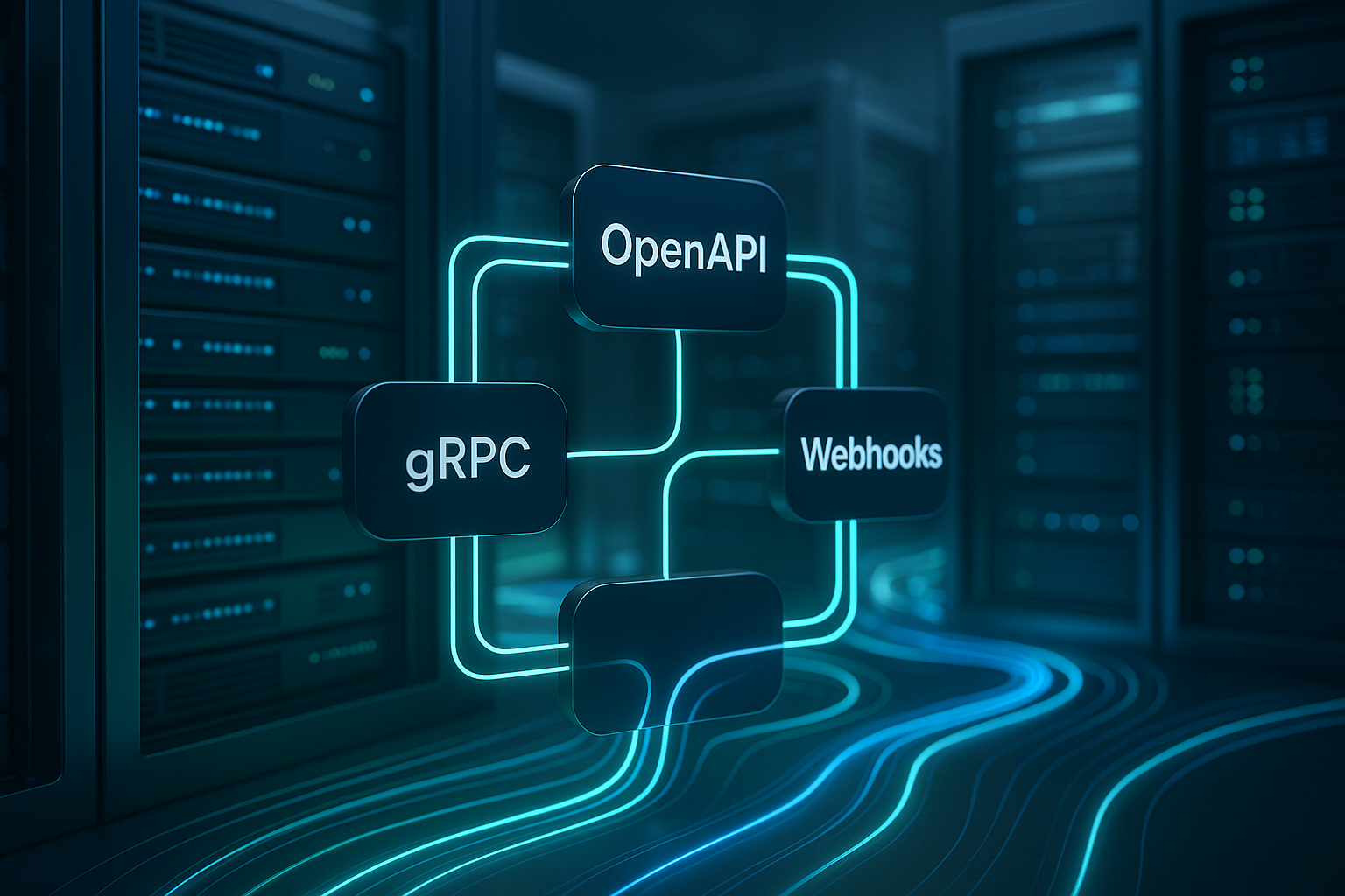 Ich setze Schnittstellen wie OpenAPI, gRPC und Webhooks gezielt ein, weil jede Wahl Kosten, Latenz und Betriebsrisiken beeinflusst. In Hosting-Landschaften treffen externe Partner-APIs, interne Microservices und Event-Pipelines aufeinander, daher benötige ich klare Verantwortlichkeiten pro Standard. Ein HTTP-Design mit sauberem Fehler- und Versionierungsmodell entlastet Support und steigert die Akzeptanz bei Integratoren. Binäre RPCs reduzieren Overhead zwischen Services und halten P99-Latenzen im Rahmen, was bei Provisionierung und Orchestrierung spürbar wirkt. Ereignisgesteuerte Abläufe verhindern Polling-Last, entkoppeln Systeme und erleichtern horizontales Skalieren.