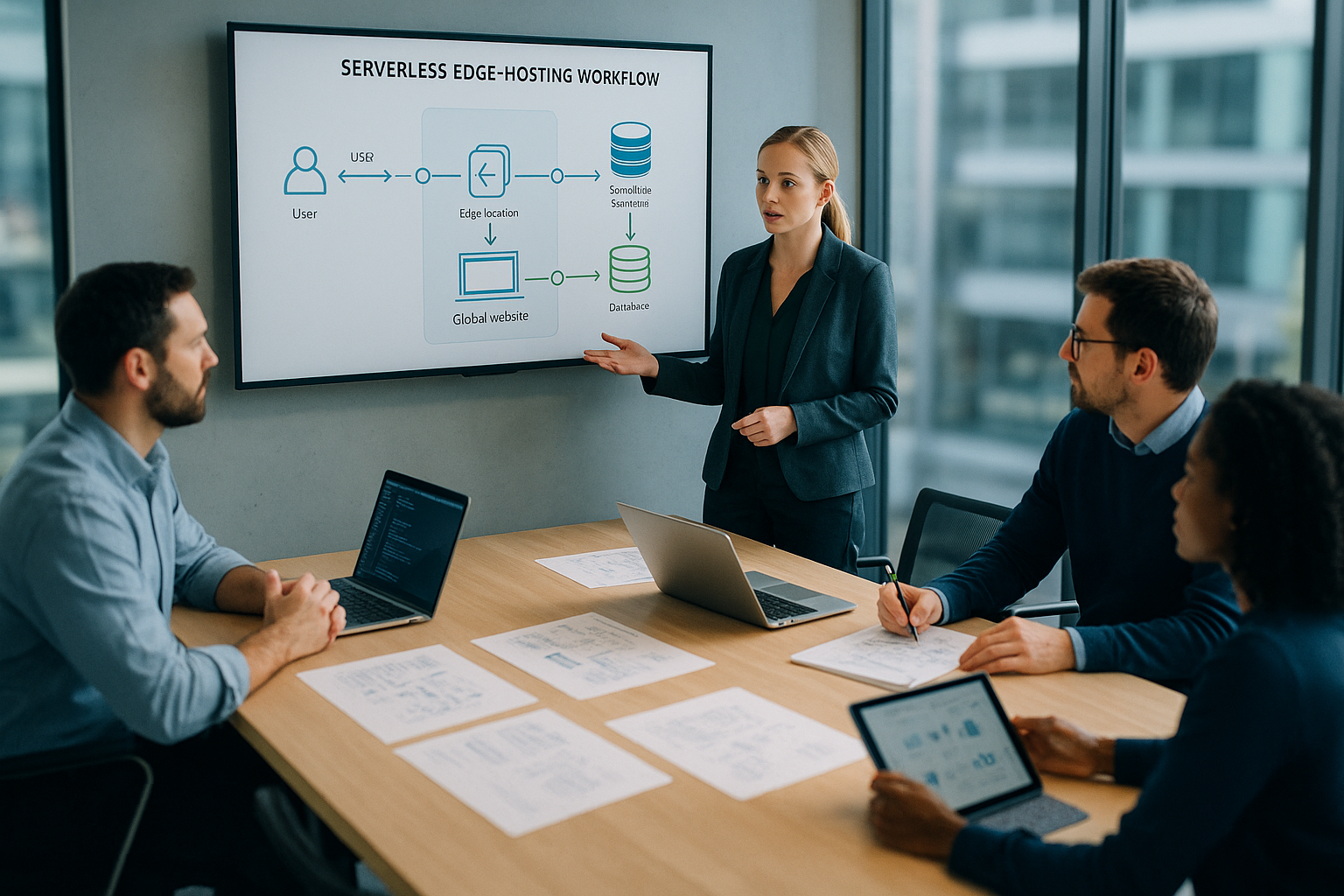 Ein globales CDN bildet die schnelle Auslieferung ab, während statische Assets aus verteilten Speichern kommen. Edge Functions kümmern sich um Geo-Routing, Language-Detection und A/B-Tests. APIs laufen als Functions-as-a-Service, um Kaltstarts und Kosten zu senken. Eine verteilte Datenbank mit Multiregion-Replikation hält Schreib- und Lesewege kurz. Wer tiefer in Delivery-Strategien einsteigen will, findet unter globale Performance mit Edge-Hosting praxisnahe Ansätze.
