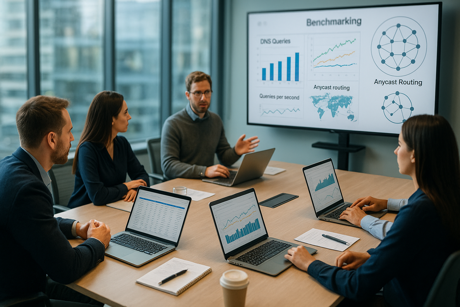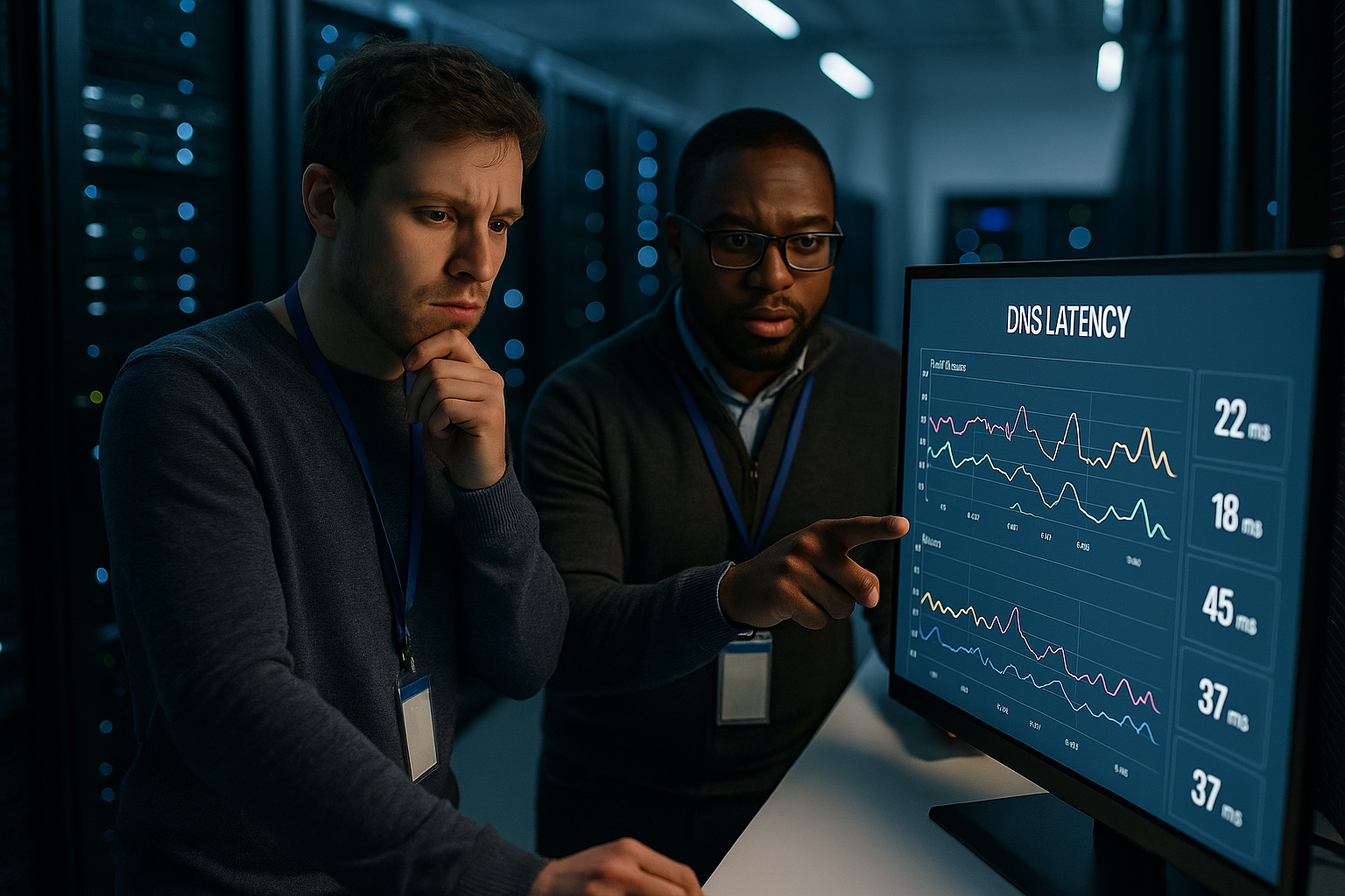 - UDP/53-, TCP/53- och DoH/DoT-RTT med verkliga frågor (A/AAAA, NXDOMAIN, DNSSEC-validerade).