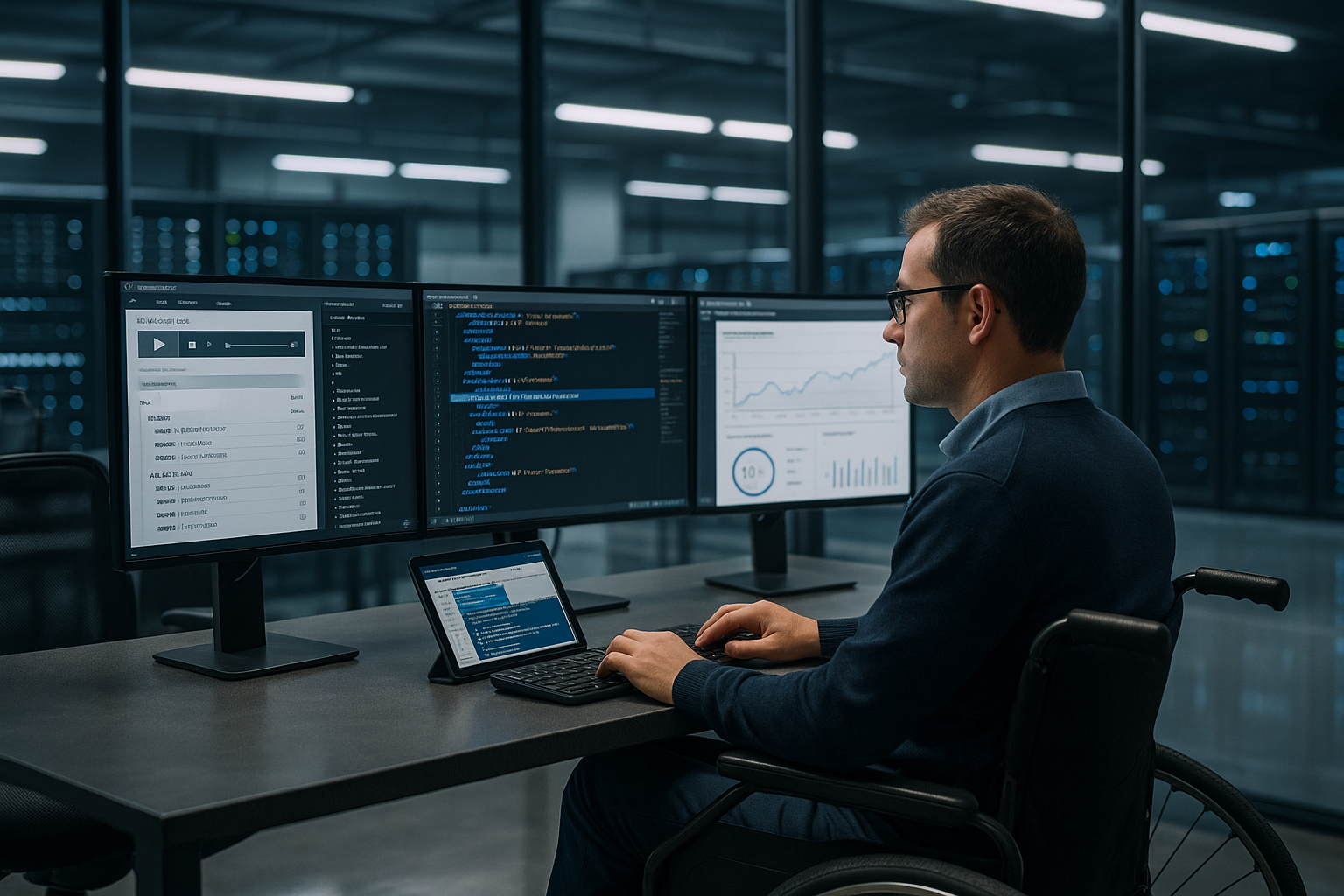 CDN-Knoten in Nutzernähe senken die Latenz, was Screenreader direkt spürbar macht. HTTP/3 mit QUIC, TLS 1.3 und HSTS stärken Sicherheit ohne fühlbaren Overhead. NVMe-Storage und aktuelle CPU-Generationen liefern kurze Antwortzeiten, die Interaktionen flüssig halten. Für Medien setze ich auf adaptive Formate und Untertitel-Dateien, die der Server parallel bereitstellt. Tipps zu Dokumenten ergänze ich mit diesem Leitfaden für barrierefreie PDFs, damit auch Downloads zugänglich bleiben.