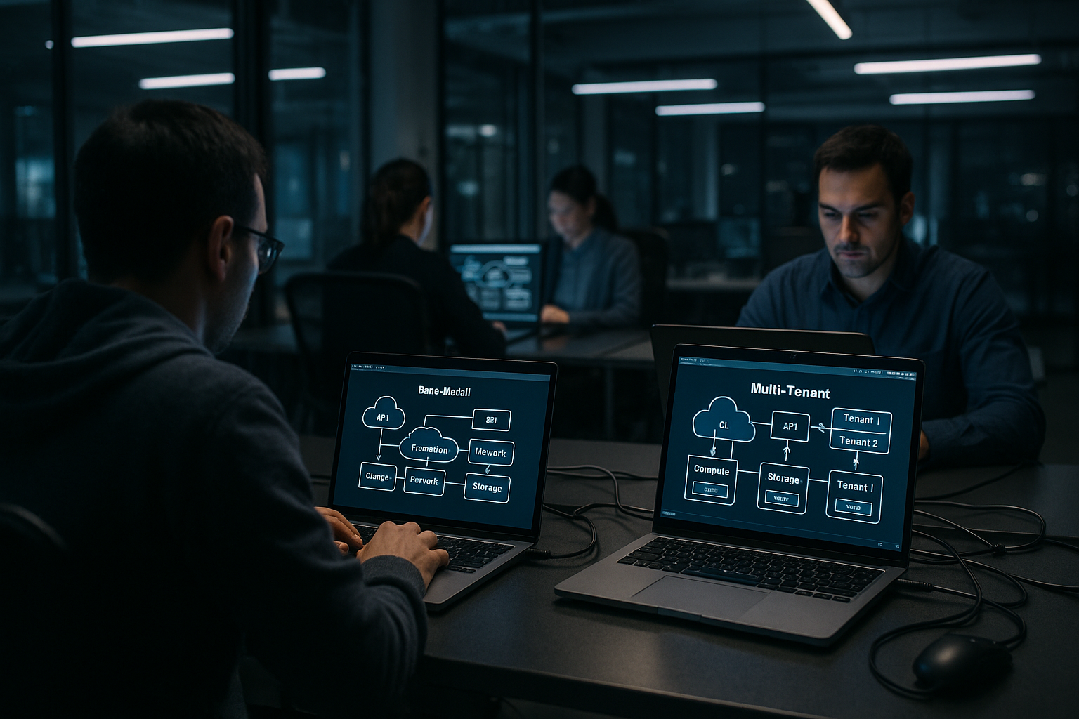 Ich trenne sensible Kerndaten auf Bare Metal und betreibe elastische Frontends virtualisiert oder im Multi‑Tenant‑Cluster. So kombiniere ich Sicherheit mit Agilität. Traffic‑Spitzen fange ich mit Auto‑Scaling und Caches ab. Datenflüsse sichere ich mit getrennten Subnetzen und verschlüsselten Links. Das senkt Risiko und hält Kosten kontrollierbar.